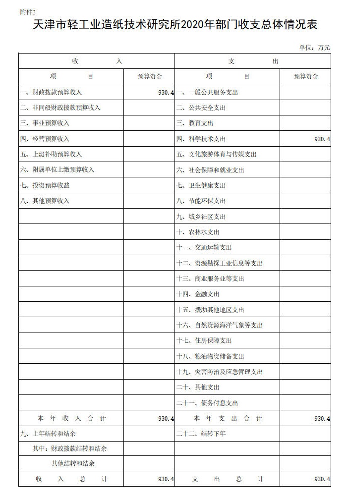 930.4 万元,与2019年预算相比增加 25.3 万元,包括财政拨款预算收入 930.4 万元、非同级财政拨款预算收入 0 万元、事业预算收入 0 万元、经营预算收入 0 万元、上级补助预算收入 0 万元、附属单位上缴预算收入 0 万元、投资预算收益 0 万元、其他预算收入 0 万元;上年结转和结余 0 万元。