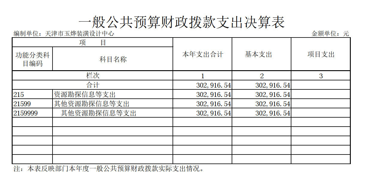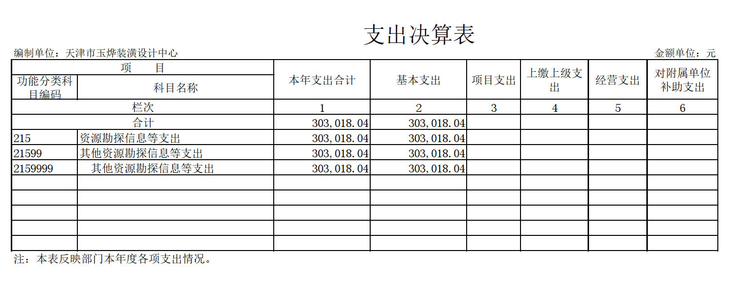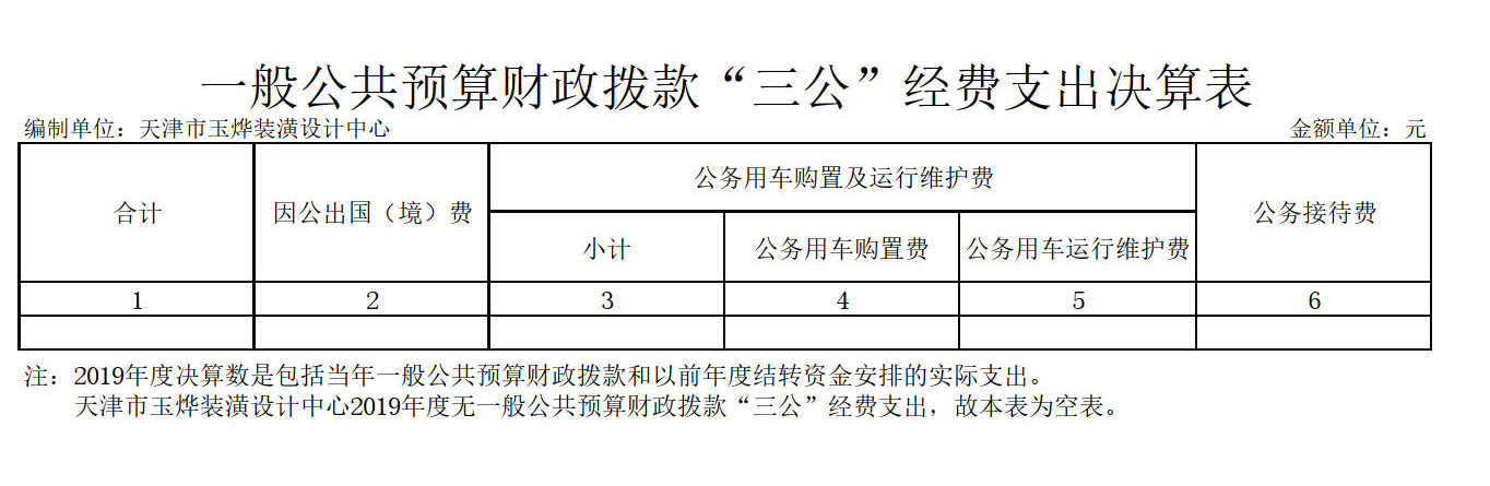 2.天津市玉烨装潢设计中心2019年度一般公共预算财政拨款“三公”经费支出决算表为空表。