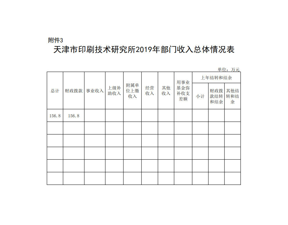 部门收入预算 156.8 万元,与2018年预算相比增加 0.1 万元。其中,本年收入合计 156.8 万元,与2018年预算相比增加 0.1 万元,包括财政拨款 156.8 万元、事业收入 0 万元、上级补助收入 0 万元、附属单位上缴收入 0 万元、经营收入 0 万元、其他收入 0 万元;用事业基金弥补收支差额 0 万元;上年结转和结余 0 万元。