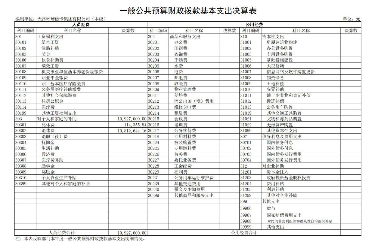 “对个人和家庭的补助”10927000.00元,包括:“离休费”114355.84元;“退休费”10812644.16元。