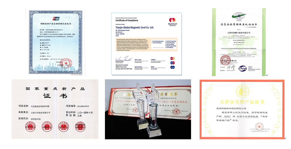 同时,随着产品知名度的不断提升,集团也获得了众多荣誉“GMCC”牌数据卡和读写机具、“天华”牌聚酯薄膜获天津市名牌产品称号,“天华”获天津市著名商标;公交收费机具及相关产品从2012年开始连续6年获得国家金卡工程“金蚂蚁奖”;热封膜获轻工联合会科技进步二等奖。